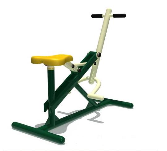 功能:主要用來鍛煉腰部和下肢的力量。 禁忌:有關(guān)節(jié)疾病者不宜使用蹬腿器。 有的老人平時常有膝關(guān)節(jié)痛、上下樓梯覺得腿腳無力等癥狀,以為用蹬腿器鍛煉一下,就能增強腿部力量。然而,有以上癥狀的老人很可能患有髖骨軟化癥,本來髖關(guān)節(jié)的負重功能就不好,再用運動強度較大的蹬腿器,很容易損傷伸膝肌群,反而加重原有癥狀。 5.健騎機